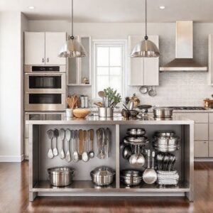 Consider using vertical space to maximize storage. Wall-mounted shelves and overhead cabinets can free up valuable floor space. Also, think about using clear containers and labels to keep everything organized and easy to find.